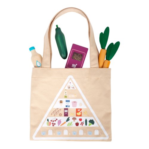Bezmäsité jedlá v detskej kuchynke! Táto obsiahla sada predstavivého jedla z dreva deti nadchne pre realistickú hru na role, v tematike vyváženej vegetariánskej stravy. Balenie ryže a cestovín má priezor, bavlnená taška je potlačená potravinovou pyramídou – deti sa jednoducho naučia o správnom stravovaní! Mlieko, maslo, syr, olej, vajcia, ryža, cestoviny, pečivo, jablko, paradajka, uhorka a mrkva. Široký výber vegetariánskych potravín, ktoré sa budú perfektne hodiť do detských kuchyniek a predajných stánkov. Fľaša vody a čajové vrecko túto sadu krásne dopĺňajú. Hlavné vlastnosti: drevená sada potravín v tematike vyváženej a vegetariánskej stravy v balení bavlnená taška potlačená potravinovou pyramídou z dreva a plstirealistické balenie cestovín a ryže s plexisklom (pri zatrasení vydáva balenie zvuk) deti sa zábavnou formou naučia o stravovacích návykoch zabalené v znovupoužiteľnom obale, deti sa pri hre naučia niečo nové o ekologii potravinám jednoducho porozumejú aj najmenšie deti kompatibilné s ďalšími produktmi z radu “