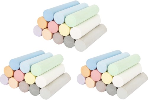 Sada kried pre kreslenie na chodník, tabuľu, alebo aj stenu. Široká paleta pestrých farieb deťom umožní vytvárať pútavé umelecké diela. Kriedy sú veľkosťou prispôsobené detským rúčkam, zároveň však majú silný prierez, ľahko sa tak držia a nelámu sa. Hlavné vlastnosti: 36 kried celkom (3 balenia, v každom 12 kried rôznych farieb)praktický tvar a veľkosť