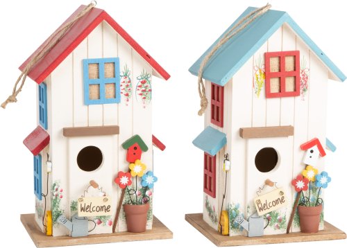 Tieto malé domčeky majú mnoho detailov ako okenice, ozdoby, balkón či terasu a sú prekrásnym bydliskom pre vtáčikov. V zadnej časti nájdete otvárateľné vrátka, zhora pútko na zavesenie. Vyrobené z glazovanej preglejky . Hlavné vlastnosti: možnosť sledovať hniezdenie vtáčikovkrásny design