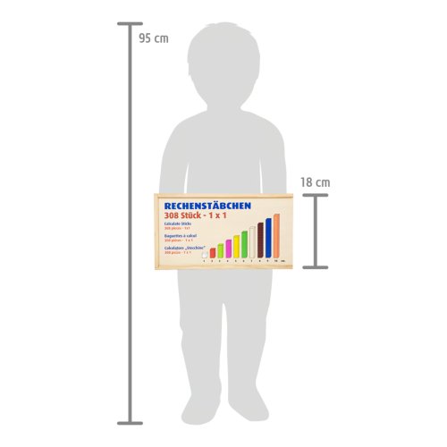 Je desať väčší ako tri? Tieto všestranné matematické tyčinky prispejem deťom k prvotnému porozumeniu číslam a rýchlo a názorne ich podporia pri prvých pokusoch o matematické rovnice. Farebné tyčinky v rôznych dĺžkach slúžia ako orientačná pomôcka. Deti predškolského veku získajú základné matematické zručnosti pri počítaní, porovnávaní a triedení tyčiniek. Sada obsahuje 6 hnedých tyčiniek, 6 modrých, 6 oranžových, 10 tmavo zelených, 10 tyčiniek vo farbe prírodného dreva, 10 žltých, 36 červených, 12 ružových, 36 svetlo zelených a 176 bielych tyčiniek. Tieto tyčinky sú ideálnymi spoločníkmi pre matematických profesionálov všetkých vekových kategórií. Trénujú predstavivosť a logické myslenie a zároveň odovzdávajú pochopenie veľkostí a farieb. Všetky tyčinky je možné po ukončení učenia roztriediť a uložiť do priloženej drevenej krabice s posuvným vekom. Hlavné vlastnosti: 308 ks viacúčelových matematických tyčiniek ako ideálny úvod do sveta číselpočítania, porovnávania a triedenia prináša dieťaťu prvé základné matematické zručnostibalené v drevenej krabici s posuvným vekom