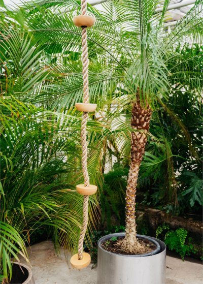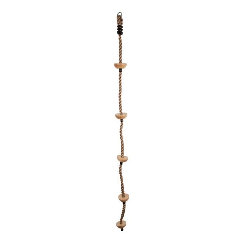 Detské šplhacie lano v prírodnom štýle s nášľapnými bodmi, ktoré sú vyrobené z masívneho dreva. Na lane ich nájdete päť, deťom uľahčí šplhanie. Lano má kovové oko na zavesenie. Či už ho použijete vonku alebo doma, deti si s ním užijú mnoho športovej zábavy. Môžete ho napríklad použiť ako vchod do domčeka na strome. Nosnosť lana maximálne 100 kg. Dĺžka lana: 190 cm. Bezpečné a rýchle zavesenie hojdačky vďaka kovovému krúžku, ktorý je súčasťou lana. POZNÁMKA: Na zavesenie odporúčame najlepšie točivý hák - nie je súčasťou balenia.