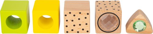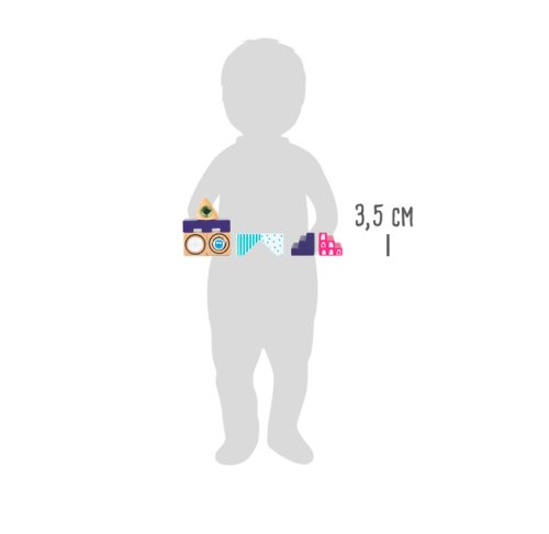 Ideálne na stavanie, stohovanie, ukladanie a objavovanie! Fantasy kocky z dreva určite nadchnú aj tie najmenšie deti. Vzrušujúce vizuálne a haptické efekty, hrkálky, hranoly, pestré farby a tvary, kamienky a idúci vlak stimulujú zmysly a zaisťujú dlhotrvajúcu zábavu. Pri skladaní si drobní stavitelia precvičujú koordináciu pohybov a jemnú motoriku, pričom vznikajú najnápaditejšie umelecké diela. Ideálna pre kombináciu s prírodnými drevenými kockami! Vysoko kvalitné spracovanie, ľahké uchopenie a ideálne pre detské ruky. V pevnom darčekovom balení môžu byť kocky uložené bezpečne! S týmito špeciálnymi, zmyslovo stimulujúcimi stavebnými kockami žiaria detské oči radosťou! Hlavné vlastnosti: Senzoorické kocky stimulujúce zmyslyPútavé farbya tvary kociek