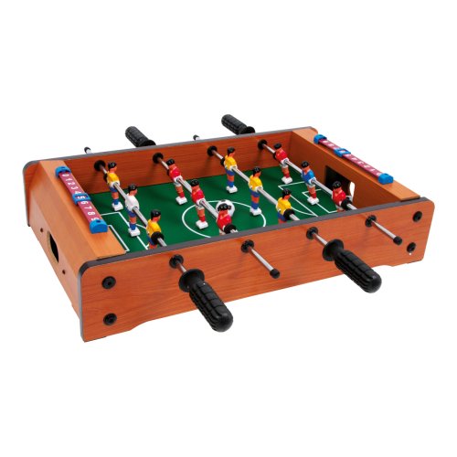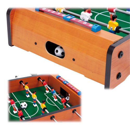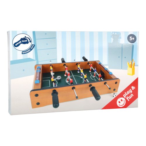 Tento malý stolný futbal je zábavná hra. Každý tím má 6 hráčov. Na svoje si prídu malí aj veľkí futbaloví fanúšikovia. Rýchla hra trénuje koordináciu ruka-oko a prináša veľa zábavy – taký je stolný futbal. V balení nájdete 2 ks loptičiek. Hračka je vyrobená z lakovaného dreva. Futbal je vybavený počítadlami gólov. Hlavné vlastnosti: trénuje koordináciu ruka-okovčetne 2 loptičiekpočítadlo gólov