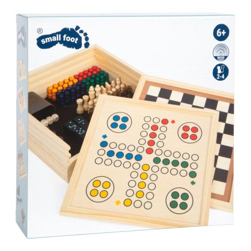 Súbor hier pre celú rodinu so všetkými dôležitými klasickými hrami a obľúbenými spoločenskými hrami. Či už domino, ludo, šach, dáma, mlyn, Halma & Co. Táto kolekcia hier s hracími doskami vyrobenými z robustného dreva obsahuje všetko, čo deti aj rodičia potrebujú pre zábavné herné popoludnie. V pevnej drevenej krabici s plsteným dnom sa nič nestratí. Hlavné vlastnosti: dlhotrvajúca zábava však má svoje miesto v drevenej krabici vysoko kvalitné materiály návody k hrám