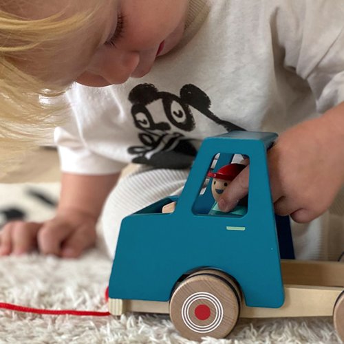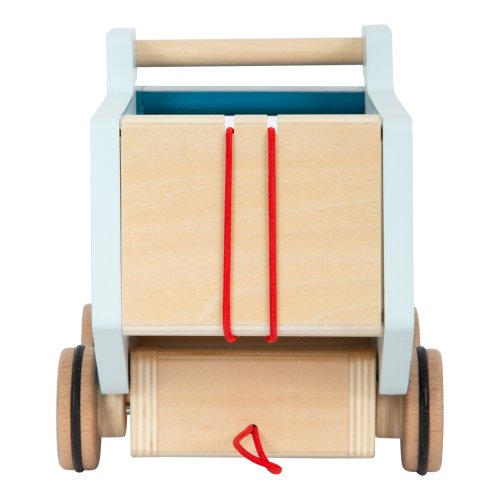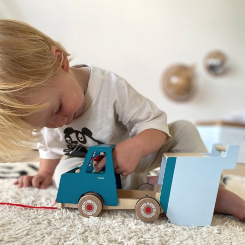 Kompaktný, vysoko kvalitný drevený sklápač v modernom dizajne je opatrený povrázkom na ťahanie. Môže deti sprevádzať na cestách po izbe a dome. Je vyrobený z odolného dreva a prináša na stavenisko v detskej izbe veľa zábavy pri učení a hraní. Korbu je možné úplne vyklopiť. Vodič sa počas jazdy pohupuje hore a dole. Autíčko má pogumované kolieska pre tichý chod. K dispozícii je aj pútko na zadnej strane, na pripevnenie ďalších vozidiel a tréning jemnej motoriky. Hlavné vlastnosti: robustný sklápač možno použiť tiež ako ťahaciu hračku pogumovaná kolieska vodič a korba sa pri jazde pohupujú vďaka pútku možno pripojiť zozadu aj iné vozidlá moderný dizajn, sýte kontrastné farby, prírodné drevo