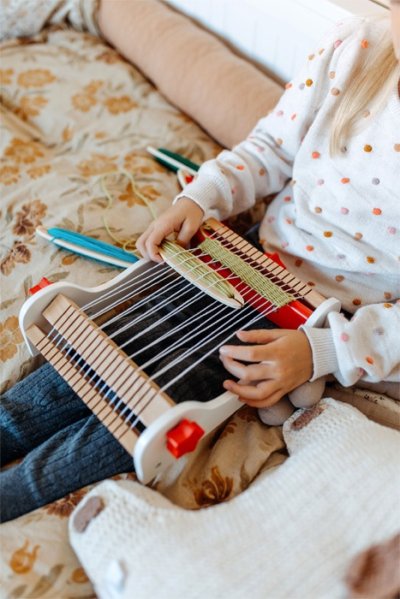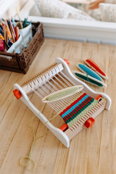 Pozor všetky kreatívne deti! Tento drevený tkací rám je obzvlášť vhodný pre prvé umelecké výtvory dieťaťa. Táto sada obsahuje základné nite a štyri malé tkacie špulky s navinutými rôzne sfarbenými vlnenými priadzami. Extra veľký a hladko sa ovládajúci napínací gombík je ideálny pre detské ruky. Kreatívna práca môže začať okamžite s obzvlášť jednoduchou obsluhou tohto prvého tkacieho rámu. Je to skvelá zábava s tkaním, ktorá podporuje rozvoj kreativity a fantázie. Hlavné vlastnosti: jednoduchá obsluha tkacieho rámuveľký napínací gombík4 špulky s prízemiami rozvíja kreativitu a fantáziu