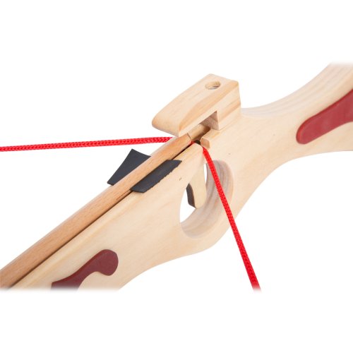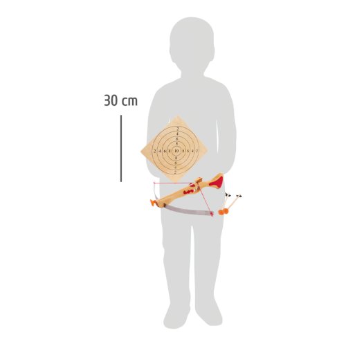S touto kušou môžu deti preukázať svoju presnosť. Strelecká zábava môže prebiehať bez váhania, pretože drevená športová kuša strieľa iba drevené šípy s prísavkami. Vysoko kvalitné gumové krytky umožňujú, aby sa šípky lepili na hladký povrch. Hlavné vlastnosti: súčasťou balenia je kuša, terč a 2 šípy s prísavkou trénuje presnosť