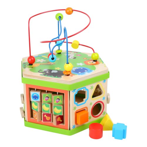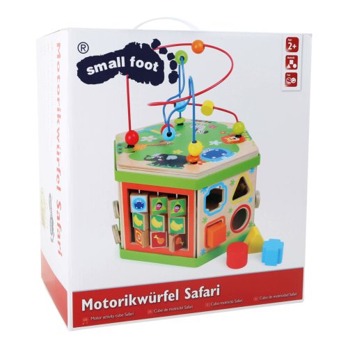 Predstavujeme Small Foot Veľká motorická kocka safari – revolúciu v detskej zábave a vzdelávaní! S touto robustnou drevenou kockou, ozdobenou roztomilými safari zvieratkami, otvárate dvere do sveta plného objavov, kde každá hrateľná plocha je novým dobrodružstvom. Predstavte si, že vaše dieťa objavuje radosť z učenia, zatiaľ čo jeho prstíky sa snažia ovládnuť posuvné pravítko alebo sa smeje, keď šmykľavka dopraví zvieratko do cieľa. Sedem interaktívnych plôch Small Foot Veľké motorické kocky safari je navrhnutých tak, aby podnecovalo zvedavosť a túžbu poznávať. Od posilňovania jemnej motoriky až po koordináciu oko-ruka, táto kocka je viac ako hračka – je to brána k nekonečnému objavovaniu. Nie je to len o hre. Small Foot Veľká motorická kocka safari je tiež dizajnový skvost, ktorý sa pýši výrobou v Nemecku, zaručujúcou kvalitu a bezpečnosť, ktoré si váš malý prieskumník zaslúži. Vnútorný úložný priestor kocky slúži ako tajná komora pre zásuvné prvky, udržuje poriadok a zároveň podnecuje detskú fantáziu. A s potlačou atraktívnych zvieracích ilustrácií sa stane aj očarujúcim doplnkom každej detskej izby. Pridajte do života vášho dieťaťa rozmer kreativity a učenia, ktorý bude posilňovať jeho zručnosti každý deň. Hlavné vlastnosti: veselý farebný safari designmultifunkčné aktivity motorická kocka na 7 hrateľných plocháchrozvíja jemnú motoriku, koordináciu oko-ruka a sústredenieinteriér ponúka úložný priestor pre zásuvné prvkyvhodné od 12 mesiacov