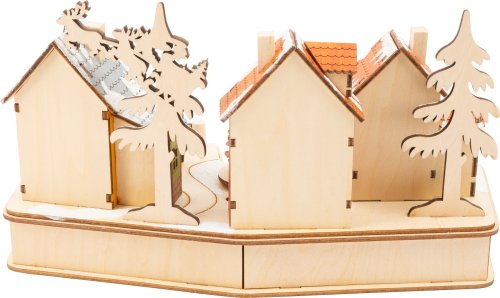 S touto bohato zdobenou vianočnou dedinou sa vianočný duch určite nasťahuje aj k vám domov. Farebné domčeky sú vyrobené z jemne vyrezávaného dreva poskytujúce nepriame osvetlenie. A je tu ešte jedna skvelá vec: Vianočný stromček uprostred dediny sa po zapnutí lampy otáča a pokiaľ sa pozriete pozorne, môžete dokonca uvidieť Santu Clausa a jeho sane. Batérie nie sú súčasťou balenia. Hlavné vlastnosti: dekoratívna vianočná lampa určite obohatí predvianočné časprepracované detaily