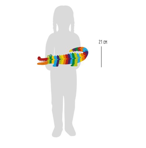 Skladať puzzle a pritom sa učiť abecedu - tento krokodíl z farebne lakovaného dreva ponúka deťom oboje! Len dáte jednotlivé diely presne k sebe a zložíte tak správne krokodíla aj abecedu. Hlavné vlastnosti: obsahuje 26 dielov ideálne pre (pred)školské deti