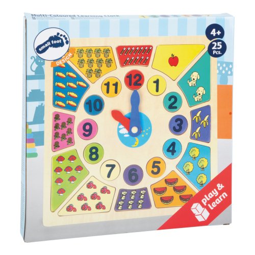 Pol deviatej? Za desať desať? S touto farebnou hračkou sa deti jednoducho naučia spoznávať čas a užijú si pri tom veľa zábavy. Drevené dieliky s číslicami môžete z hracej dosky vybrať a potom opäť vložiť späť, ale so správne zoradenými časmi a množstvom. Skvelá hračka pre predškolské aj školské deti, ktorá im pomôže s učením čísel. Bude sa hodiť do každej detskej izby. Hlavné vlastnosti: drevená vkladacia výuková hračka naučí deti poznávať čas aj množstvo trénuje zručnosť
