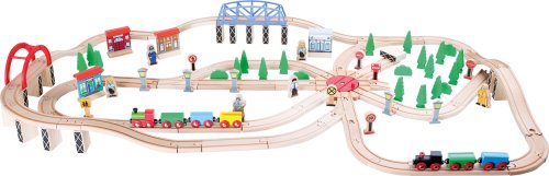 S touto drevenou železničnou súpravou ožije život na koľajniciach. Robustné drevené koľaje a výhybky umožňujú vagónom bezpečne dôjsť do cieľa. Krajinu dopĺňajú stromy a rôzne drevené budovy, mosty, postavičky, lokomotívy a vagóny . Hlavné vlastnosti: Materiál: drevoObsahuje 140 ksvhodné od 3+