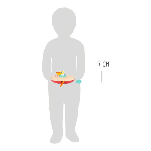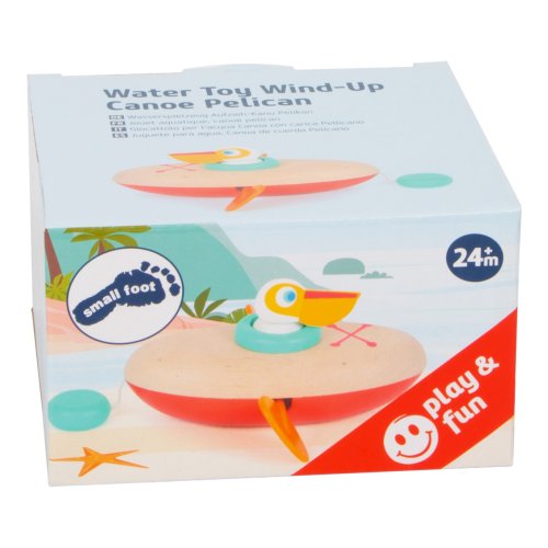 Malý pelikán dostal zelenú a môže vyjsť na plavbu. Jeho kanoe je vyrobená z dreva a plastu, po vode dokáže plávať úplne sám – má naťahovací mechanizmus. S touto hračkou si deti užijú vo vode mnoho zábavy. Vodné hračky vyrobené z dreva sú ekologickejšou alternatívou plastových a gumových hračiek. Pri hre s pelikánom sa deti naučia o princípe príčiny a následku, vďaka naťahovaciemu mechanizmu. Pre dlhšiu životnosť hračky ju po vytiahnutí z vody poriadne osušte . Hlavné vlastnosti: využitie vo vani či na bazéne naťahovací mechanizmus umožňuje otáčanie bočných pádiel vhodné pre rozvoj fantázie a koordinácie