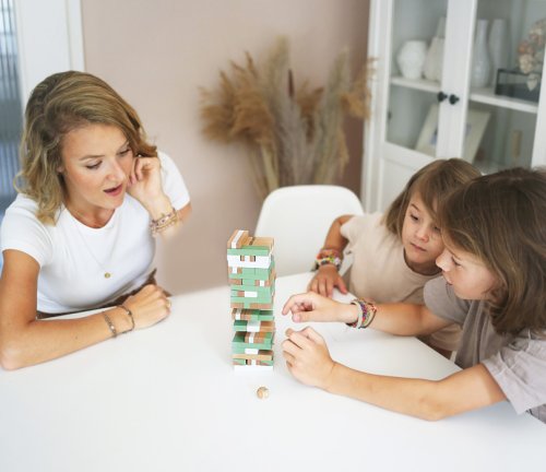 Klasická hra v modernom a elegantnom vzhľade s krásnymi zlatými detailmi, trendy pastelovými farbami v kombinácii s bielou farbou a jasne viditeľným drevom. Hra sa skladá z 54 vysoko kvalitných a pevných drevených dielikov s rôznymi designami. Rôzne úrovne obtiažnosti a konštrukcie veže, môžete hrať s kockou aj bez nej. Vysoko kvalitná hračka, ktorá je pekná na pohľad. Balenie 2v1, krabica neslúži len ako úložisko, pomôže vám aj so stavbou veže. Pomáha s rozvojom jemnej motoriky a sústredenosti detí. Skvele sa hodí k ostatným klasickým hrám z kolekcie Gold Edition. Hra sa dá jednoducho porozumieť, je zábavná a nadchne ľudí všetkého veku. Hlavné vlastnosti: Drevená rodinná hra Rozvíja jemnú motoriku a sústredenosťKrásna farebná kombinácia a viditeľné drevo