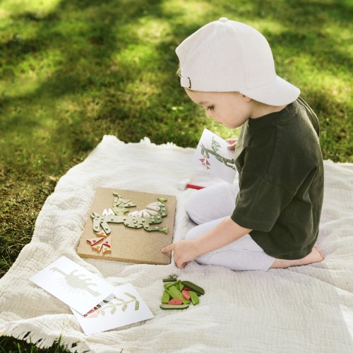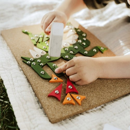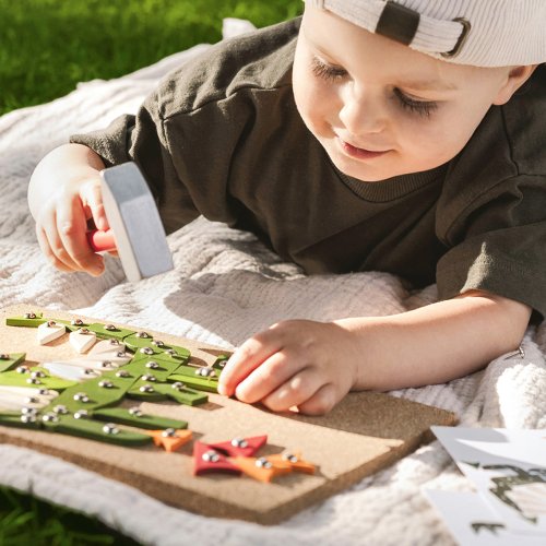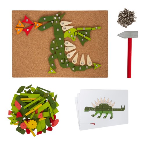 Obsiahla kreatívna hracia sada pre milovníkov prírody! V balení nájdete korkovú podložku, drevené kladivo, pripináčiky a mnoho dielikov z laminovaného dreva v rozdielnych tvaroch a farbách. V krabici, ktorá je vhodná aj na uschovanie tejto hračky, nájdete šesť obrázkových predlôh . Klasická zatĺkacia hra v moderných farbách a nesmrteľnom dizajne, s ktorou si deti môžu vytvoriť obrázky rastlín, dinosaurov či čohokoľvek iného. Môžu sa riadiť obrázkovými predlohami alebo tvoriť podľa vlastnej predstavivosti. Hračka pomáha s rozvojom kreativity, trénuje zručnosť, zlepšuje koordináciu ruka-oko a rozoznávanie farieb a tvarov. Zatĺkacia sada je vhodná pre deti malé aj väčšie. Hlavné vlastnosti: zatĺkacia hra s rozsiahlym výberom motívovdrevené kladivko, pripináčiky, korková podložkadieliky rôznych tvarov a fariebdeti si precvičia motoriku a rozoznávanie tvarov a fariebmoderné farebné schémylepšuje zručnosť a koordináciu ruka-oko