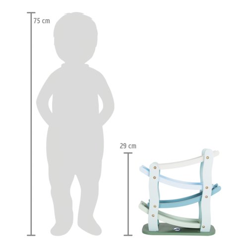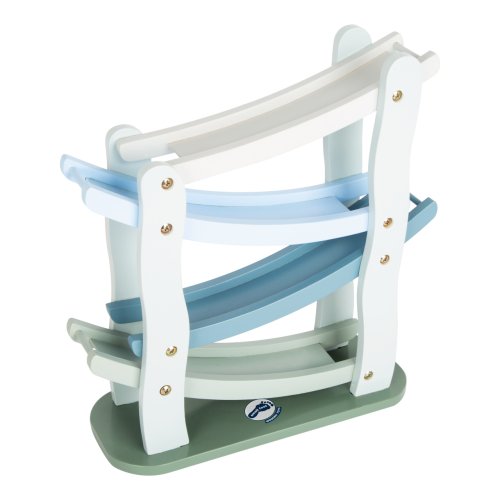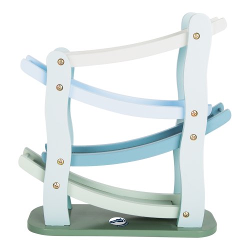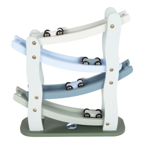 Na značky, pripraviť, štart! Táto drevená kaskádová závodná dráha ponúka priestor na zmeranie rýchlosti 4 autíčok. Z jedného poschodia na druhé, autíčka robia premety a len pozerať na ne je zábavné. Dráha je vyrobená z prírodného a bieleho dreva, jedno autíčko je prírodné, zvyšné 3 sú farebné. Hračka rozvíja motoriku detí, aj koordináciu ruka-oko. Hlavné vlastnosti Klasický dizajn v modrošedej farbeObojstranné autíčka s pogumovanými kolesamiRozvíja motoriku a koordináciu ruka-oko
