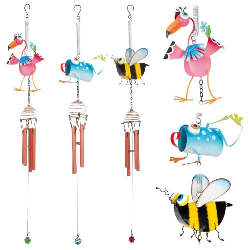 Nápadito navrhnutá zvieracia figúra z jasne lakovaného plechu pre potechu očí, v troch variantoch podľa Vášho výberu. Kovová zvonkohra sa rozoznie poryvom vzduchu, alebo pohybom ťaží tka. Hlavné vlastnosti: trojica motívov a farebných prevedení kombinuje dekoráciu a zvonkohru