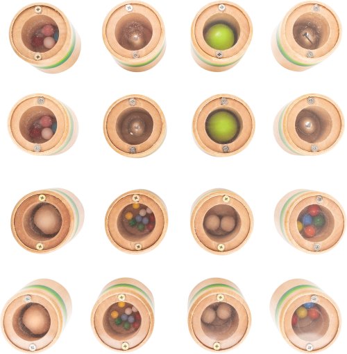 Počúvajte! S týmto zvukovým pexesom v dizajne Tuze Hladnej Húsenice si deti užijú mnoho zábavy. Cieľom je rozlíšiť rozdielne zvuky a pomenovať ich. Trepaním a starostlivým počúvaním môžu hráči rozoznať, ktoré 2 nádobky patria k sebe. Môže pomôcť aj váha nádobky. Naspodku nájdete okienko, vďaka ktorému jednoducho skontrolujete obsah nádobky. Zábava pre celú rodinu! Kto pozbiera najviac párov? Hlavné vlastnosti: Drevo, kov, syntetikaTrénuje pamätTrénuje hmat a sluch