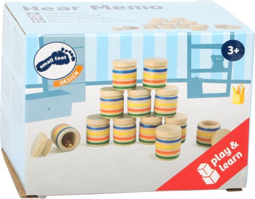 12 vysoko kvalitných drevených dóz so skrutkovacím uzáverom robí z tejto zvukovej hry trénera pamäte. V dvoch dózach je vždy rovnaký obsah a cieľom hry je tento pár nájsť. Na vás je, čo do dózičiek vložíte. Budeš počuť rozdiel medzi sklenenými korálkami, okruhliakmi či zvončekmi? Hlavné vlastnosti: sada obsahuje 12ks drevených dózičiekhra je určená pre 1-2 hráčovtrénuje sústredenie a pamäť