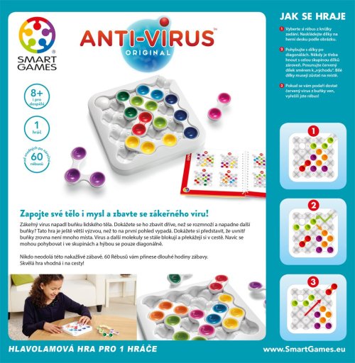 Hra Anti-VIRUS patrí do skupiny viacúrovňových, logických hier Smart games, ktoré sú určené predovšetkým pre jedného hráča (avšak hru môže hrať aj hráčov viac). Logické hry Smart Games obsahujú vždy zadanie v niekoľkých rôznych stupňoch obtiažnosti, rozvíja IQ, logické myslenie, priestorovú predstavivosť, koncentráciu a plánovanie.