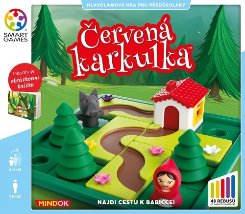 Bolo nebolo... Pripomeňte si kúzlo obľúbenej rozprávky prostredníctvom zábavnej hlavolamovej hry pre predškolákov. Pomôžete Karkulce nájsť cestičku k babičkinej chalúpke? Umiestnite Karkulku, stromy a chalúpku na hraciu dosku a lesnú cestičku priveďte k babičkinej chalúpke. Akonáhle si však osvojíte tento "bezpečný" variant hry, všetko sa skomplikuje prítomnosťou zákerného vlka. Pozor! Čo keď sa k babičke dostane rýchlejšie? V týchto úlohách je potrebné vystavať dve oddelené cestičky. Raz sa vydá maškrtný vlk, druhú dôverčivá Karkulka. Hra obsahuje 48 zadaní (24 bez vlka a 24 s vlkom) a tiež obrázkovú knižku s netradičným zvratom tradičného príbehu.