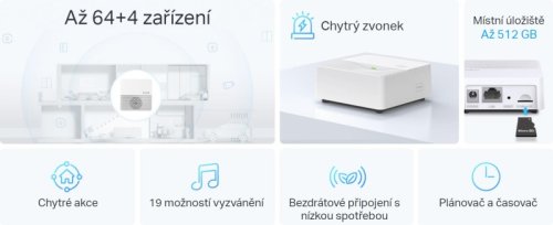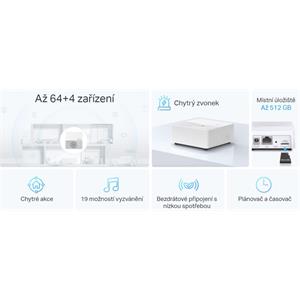 Tapo H200 je kľúčová brána do Tapo ekosystému plného ovládacích prvkov, čidiel, senzorov, osvetlenia, zásuviek, kamier a ďalšieho príslušenstva. Táto IoT gateway slúži na pripojenie až 64 senzorov, prepínače, tlačidlá a TRV pracujúce na frekvencii sub-1G (863, 864 a 868 MHz), zároveň sa do siete a cloudovú komunikáciu pripája pomocou 2,4 GHz WiFi. Zariadenie funguje ako šikovný zvonček s výberom až z 19tich vyzváňacích melódií alebo ako alarm s 90 dB akustickým bezpečnostným upozornením.