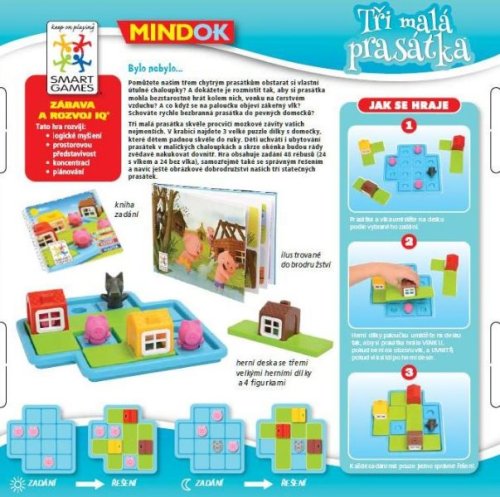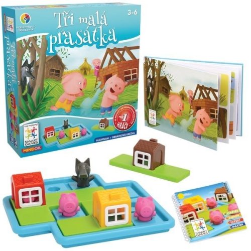 Tri malé prasiatka skvele precvičia mozgové závity vašich najmenších. V krabici nájdete 3 veľké puzzle dieliky s domčekmi, ktoré deťom padnú skvele do ruky. Deti uchvátia aj ubytovanie prasiatok v maličkých chalúpkach a cez okienka budú rady zvedavo nakukovať dovnútra.