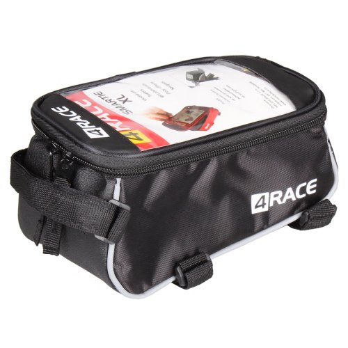 Väčšia predná taška s vrchným vreckom na smartphone 4RACE Smartie XL je určená na upevnenie na vrchnú rámovú rúrku. Má vrchné priehľadné (dotykové) vrecko, cez ktoré dobre uvidíte na svoj telefón a prídavný malý priestor pre najnutnejšie príslušenstvo ako peňažka, kľúče, sadu na opravu atď. Taška je vyrobená z vodeodolného 100% polyesteru so spevneným dnom na ochranu proti otrasom a na rám bicykla ju jednoducho pripevníte pomocou 3 suchých zipsov. Po stranách sú umiestnené reflexné prvky na zvýšenie bezpečnosti jazdy. Rozmery tašky sú 180 x 100 x 90 mm a veľkosť okienka je 123 x 92 mm (5,5"). Taška sa vyrába v rôznych farebných prevedeniach.