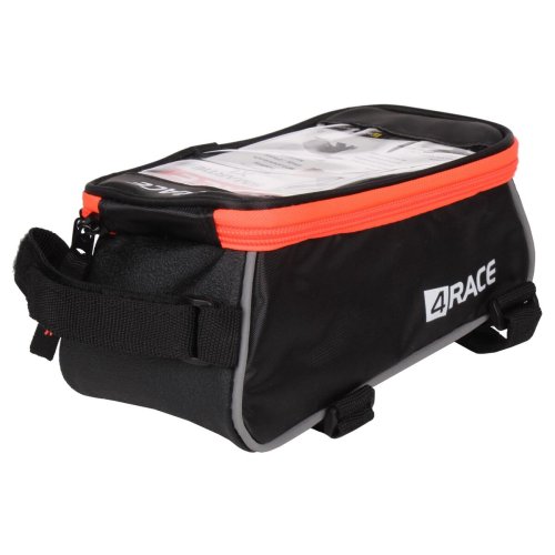 Väčšia predná taška s vrchným vreckom na smartphone 4RACE Smartie XL je určená na upevnenie na vrchnú rámovú rúrku. Má vrchné priehľadné (dotykové) vrecko, cez ktoré dobre uvidíte na svoj telefón a prídavný malý priestor pre najnutnejšie príslušenstvo ako peňažka, kľúče, sadu na opravu atď. Taška je vyrobená z vodeodolného 100% polyesteru so spevneným dnom na ochranu proti otrasom a na rám bicykla ju jednoducho pripevníte pomocou 3 suchých zipsov. Po stranách sú umiestnené reflexné prvky na zvýšenie bezpečnosti jazdy. Rozmery tašky sú 180 x 100 x 90 mm a veľkosť okienka je 123 x 92 mm (5,5"). Taška sa vyrába v rôznych farebných prevedeniach.