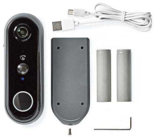 Chytrý domový zvonček s integrovanou kamerou , mikrofónom a bezdrôtovým pripojením Wi-Fi ponúka možnosť obojsmernej komunikácie cez aplikáciu Nedis SmartLife. Vďaka senzoru pohybu dokáže detekovať pohyb predo dvermi a upozorniť naň notifikáciou v smartfóne. Kamera disponuje rozlíšením 2,0 Mpx , uhlom záberu 180 ° a nočným videním do vzdialenosti až 5 metrov. Poteší tiež podpora micro SD kariet do veľkosti až 128 GB, na ktorú je možné ukladať záznamy z kamery. Tie je potom možné spätne prehrávať v mobilnej aplikácii. Samozrejmosťou je odolnosť proti prachu a vode podľa IP54 . O napájanie sa starajú dve dobíjacie batérie typu 18650 s celkovou kapacitou 5200 mAh a výdržou až 4 mesiace. Nabíjanie je realizované cez micro USB konektor.