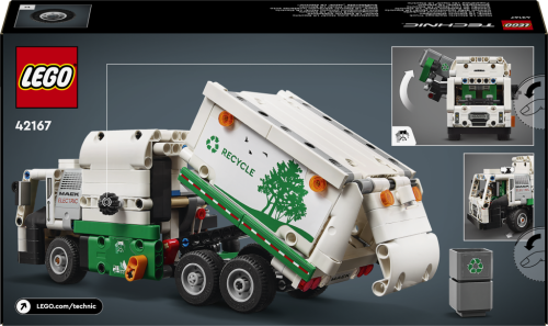 Inšpirujte malých milovníkov vozidiel od 8 rokov na to, aby premýšľali o ekologickej energii a udržali v meste poriadok so stavebnicou LEGO® Technic (42166) Smetiarske vozidlo Mack® LR Electric. Model je inšpirovaný moderným smetiarskym vozidlom značky Mack a pýši sa realistickými prvkami a pohybom.