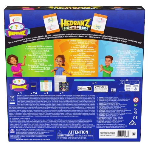Rýchla hádacia hra „Čo som?“ je späť z Hedbanz Lightspeed! Hedbanz od Spin Master Games je zábava pre celú rodinu. Hrá obľúbenú hru s otázkami rýchlostí svetla! Pravidlá sa menia bleskovo, pretože vaša elektronická čelenka prepína medzi troma farbami. Uhádnite maximum kariet, než z čelenky začne hrať hudba, ktorá znamená, že váš čas vypršal! Hráč, ktorý nazbieral najviac bodov, vyhráva! Keď svieti ZELENÁ, hráte scénku! ORANŽOVÁ znamená rýchlosť svetla: odpovedajte čo najrýchlejšie! Keď uvidíte MODRU, je čas na tri nápovedy! Túto jedinečnú elektronickú čelenku si zamilujete. Pretože má SVETLÁ a ZVUKY, vyžaduje 2 batérie AAA (nie sú súčasťou balenia). Na kartách sú vtipné ilustrácie, ako napríklad kyslá uhorka alebo elektrická gitara. Hedbanz je nevyhnutným doplnkom vašej zbierky doskových hier pre deti vo veku 8–12 rokov, ale pobaví každého od 6 rokov vyššie. Je vhodná pre 2-6 hráčov a poslúži vždy, keď budete potrebovať hračky pre dievčatá vo veku 6-8 rokov, rodinné doskové hry alebo hry pre deti. Hedbanz je spoločenská aktivita pre celú rodinu, ktorá pobaví všetky generácie. Je to klasická hra s hádaním obrázkov, ktorá je známa už roky! Či už hľadáte doskové hry pre deti vo veku 6–8 rokov alebo akékoľvek zábavné hry, táto nová edícia Hedbanz vás jednoznačne pobaví – keď sa zmení farba, menia sa aj pravidlá! Pripravte sa na svetlá, farby a akciu s Hedbanz Lightspeed! Spin Master prináša deťom zábavu v podobe hračiek a hier vrátane hračiek pre batoľatá, hračiek pre dievčatá a doskových hier. Zbierajte svoje obľúbené plyšové hračky, antistresové hračky, autá na diaľkové ovládanie, akčné figúrky, bábiky a príslušenstvo a mnoho ďalšieho. V našom katalógu nájdete ideálny darček ku každým narodeninám, od špeciálnych darčekov pre deti a batoľatá až po darčeky pre tých, ktorí zostávajú mladí duchom. Pokiaľ chcete ešte viac, pozrite sa na vzdelávacie hračky pre deti, hračky do bazéna, vonkajšie hry a monster trucky vhodné pre každé ročné obdobie. Buďte kreatívni s výtvarnými sadami, stavebnicovými hračkami a autíčkami na diaľkové ovládanie alebo skladajte skladačky pre dospelých a hrajte kartové hry. Roztočte to na pieskovisku ešte dnes so Spin Masterom!