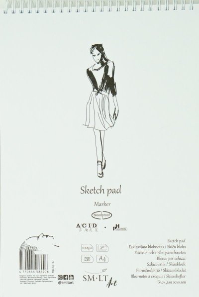 Blok s bielym, jednostranne nepriepustným poťahovaným papierom, 100g/m2. Povrch je hladký a je vhodný najmä pre popisovače a gélové perá. S prírodným kartónovým obalom, pevnou zadnou stranou a špirálou na hornej strane. Vnútorný papier je bez kyselín, pH neutrálny a má certifikát FSC.