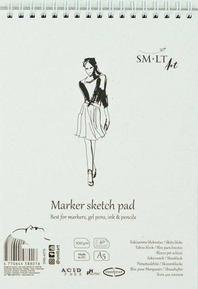 Blok s bielym, jednostranne nepriepustným poťahovaným papierom, 100g/m2. Povrch je hladký a je vhodný najmä pre popisovače a gélové perá. S prírodným kartónovým obalom, pevnou zadnou stranou a špirálou na hornej strane. Vnútorný papier je bez kyselín, pH neutrálny a má certifikát FSC.
