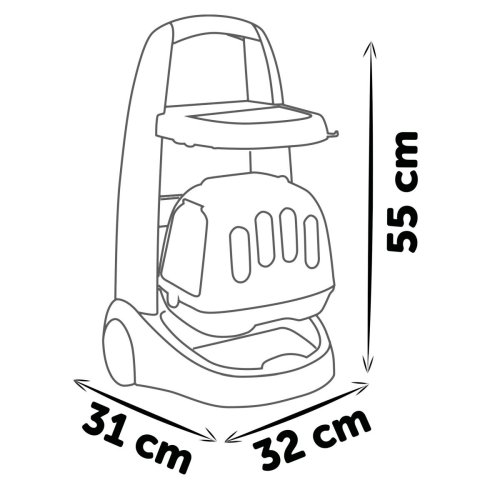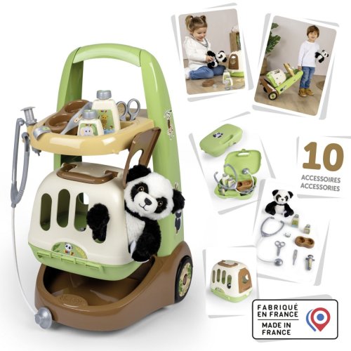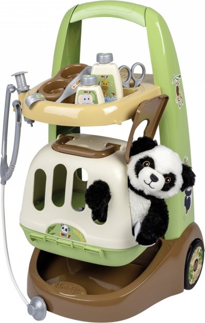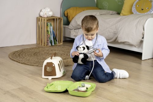 Vďaka kolieskam ho preveziete všade po dome. Na liečbu vašich malých pacientov máte k dispozícii bohaté príslušenstvo. Súčasťou je rozkošná plyšová panda. Po odstránení hornej časti, je možné prepravnú klietku použiť ako veterinárny kufrík. Vďaka kufríku 2v1 môžete prepravovať všetky svoje lekárske vybavenie a poskytovať pomoc. Dvierka prepravného boxu majú otvor, aby ste videli pandu, keď je vo vnútri.