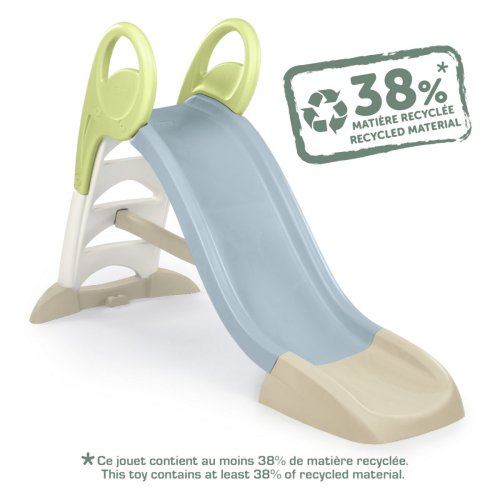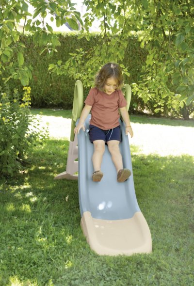 Plastová šmykľavka s dĺžkou sklzu 150 cm. K šmýkačke je možné pripojiť hadicu s vodou a vlhčiť tak sklznú plochu pre ľahšie a rýchlejšie kĺzanie. Tento výrobok obsahuje minimálne 38 % recyklovaného materiálu. Plastové diely sú ošetrené proti UV žiareniu pre dobrú odolnosť a dlhšiu trvanlivosť farieb v priebehu času.