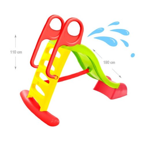 Plastová šmykľavka veľká s dĺžkou sklzu 180 cm. V zeleno/červeno/žltej farebnej kombinácii. Veľmi jednoduché zostavenie. Šmykľavka je veľmi stabilná. Vhodné pre deti od 3 rokov Materiál: plast Nosnosť: 50 kg Hmotnosť balenia: 5 kg