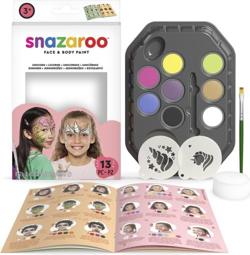 SNAZAROO Sada 8 farieb na tvár a telo so šablónami Jednorožce a motýle