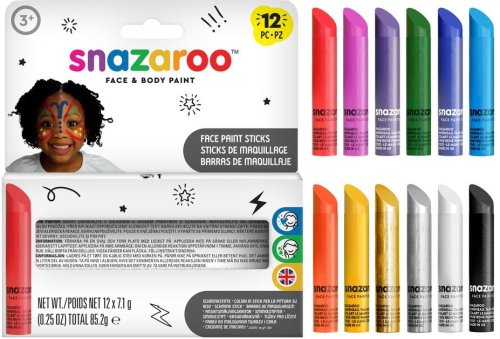 Veľká sada farebných tyčiniek v tvare ceruziek na maľovanie na tvár a telo Snazaroo .