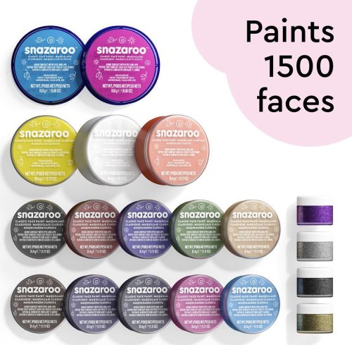 Veľká sada kvalitných farieb na tvár a telo Snazaroo pre profesionálov na namaľovanie až 1500 tvárí.