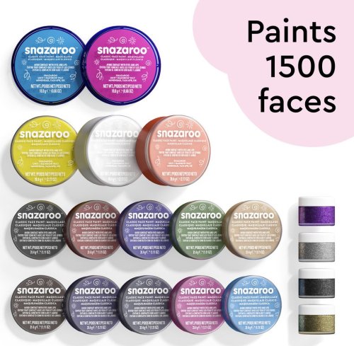 Veľká sada kvalitných farieb na tvár a telo Snazaroo pre profesionálov na namaľovanie až 1500 tvárí.