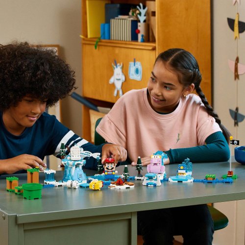 Deti môžu svoj svet LEGO® Super Mario™ obohatiť o vzrušujúcu ľadovú úroveň so stavebnicou Snehové dobrodružstvo s Fliprusom – rozširujúca súprava (71417), ktorá ponúka 4 postavy z hry Super Mario™. Hráči môžu zbierať digitálne mince za to, že figúrkam LEGO® Mario™, LEGO® Luigi™ alebo LEGO® Peach™ (nie sú súčasťou balenia) pomôžu poraziť Červeného Koopa Troopu, Freezieho a Flipruse. Tiež môžu korčuľovať na „ľade“, zahriať sa pri „ohni“ a dať skryté ovocie ako darček malému tučniakovi. (Poznámka: Na hranie je potrebný štartovací set 71360, 71387 alebo 71403.)