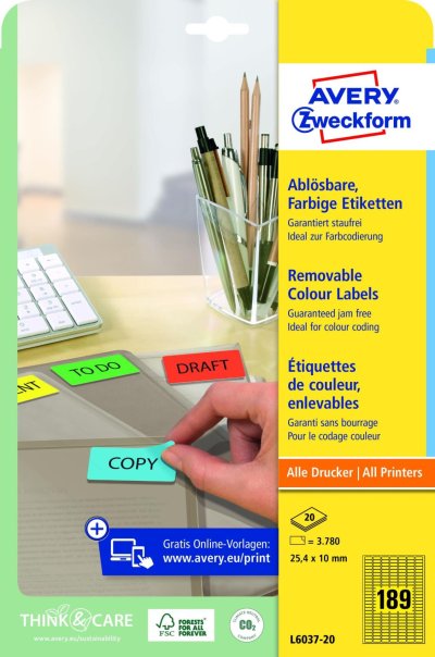 Snímateľné etikety Avery Zweckform žltej farby - ideálne pre farebné rozlíšenie dokumentov a zložiek Spoľahlivo držia a sú snímateľné bez zanechania stôp po lepidle Bezproblémový priechod etikiet tlačiarňami …