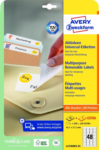 Snímateľné etikety Avery Zweckform dobre držia, zároveň sa dajú ľahko odlepiť bez zanechania zvyškov lepidla vďaka technológii Stick&Lift Sú ideálne pre akékoľvek krátkodobé označovanie napr.