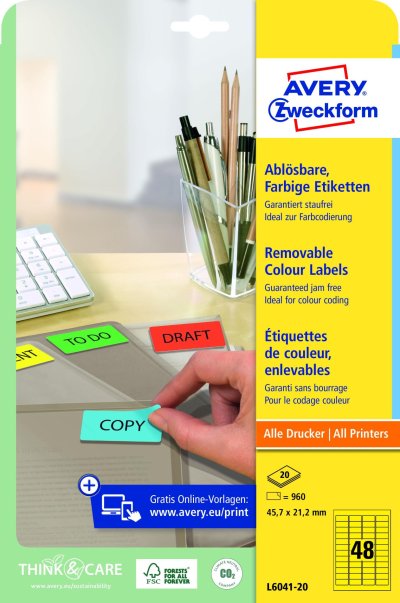 Snímateľné etikety Avery Zweckform žltej farby - ideálne pre farebné rozlíšenie dokumentov a zložiek Spoľahlivo držia a sú snímateľné bez zanechania stôp po lepidle Bezproblémový priechod etikiet tlačiarňami …