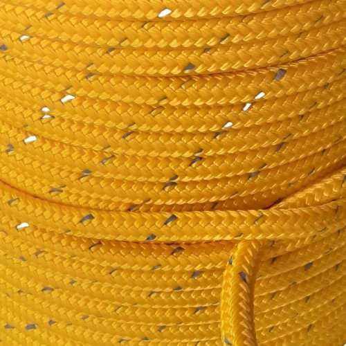 Šnúra pletená s jadrom PPV 6 mm, 16 pramenná s reflexnou páskou, 100 m, žltá, ENPRO
