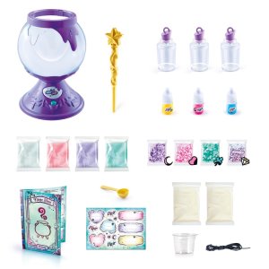 Nový rad slizov Magický elixír od populárnej značky So Slime! Sada Kotlík ti umožní vyrobiť si 10 magických elixírov zo slizu v skutočnom kúzelnom kotlíku so svetelnými a hmlovými efektmi. Postupuj podľa receptov a vyrob si napríklad elixír meniaci farbu, svietiaci v tme alebo bublajúci lektvar. Stačí pridať do kotlíka prášok na sliz, elixír, dekorácie a zamiešať pomocou kúzelnej zlatej paličky. Hotové slizy potom môžeš uchovať v krásnych fľaštičkách na elixíry, ktoré si pomocou šnúrky môžeš zavesiť aj na krk. Každé balenie obsahuje kotlík, prútik, prášky na sliz, recepty na elixíry, odmerku, 4 dekorácie do slizu, 3 elixíry, 3 fľaštičky na elixír, návod. Výrobok vyžaduje 4 × 1,5V AA batérie (nie sú súčasťou).
