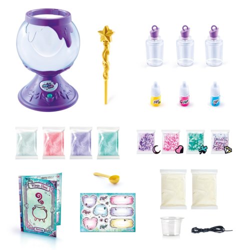 Sada Kotlík ti umožní vyrobiť si 10 magických elixírov zo slizu v skutočnom kúzelnom kotlíku so svetelnými a hmlovými efektmi Postupuj podľa receptov a vyrob si napríklad elixír meniaci farbu, svietiaci v tme alebo bublajúci elixír zlaté paličky Hotové slizy potom môžeš uchovať v krásnych fľaštičkách na elixíry, ktoré si pomocou šnúrky môžeš zavesiť aj na krk