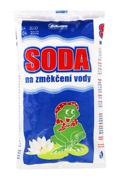 Sóda na zmäkčenie vody. Soda prášková zabraňuje tvorbe vodného kameňa, tiež je vhodná na zmäkčenie vody ak namáčanie a pranie veľmi znečistenej bielizne. Pridaním k praciemu prášku pri praní v práčke zabraňuje tvorbe vodného kameňa a šetrí práčku.