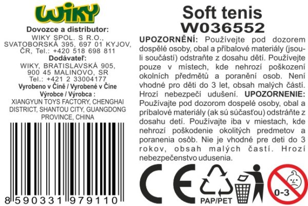 Soft tenis set. Obsahuje 2 rakety, 2 loptičky. Rozmery rakety 20,5x41,5x3 cm, loptičky 8 cm.